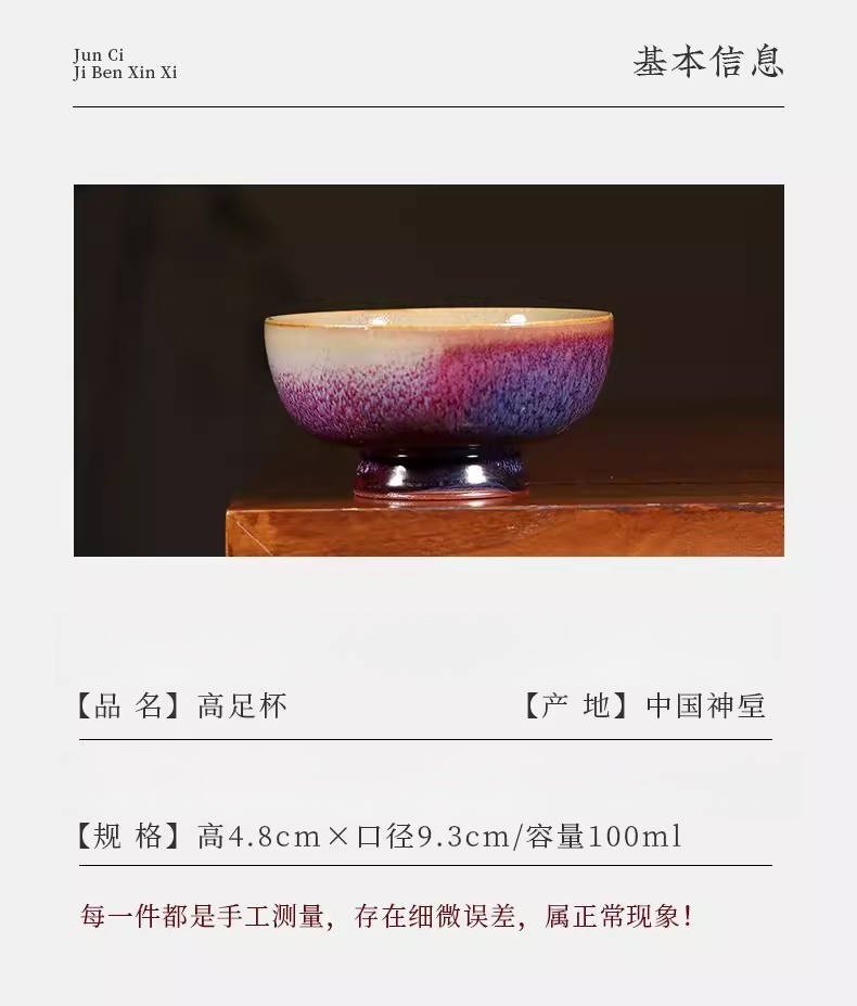 钧瓷传统手工单杯高足杯陶瓷茶具茶杯主人杯