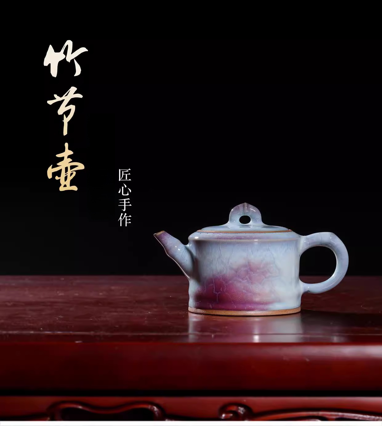 传统手工家用办公室钧窑钧瓷茶具釉窑变色套装僧帽壶