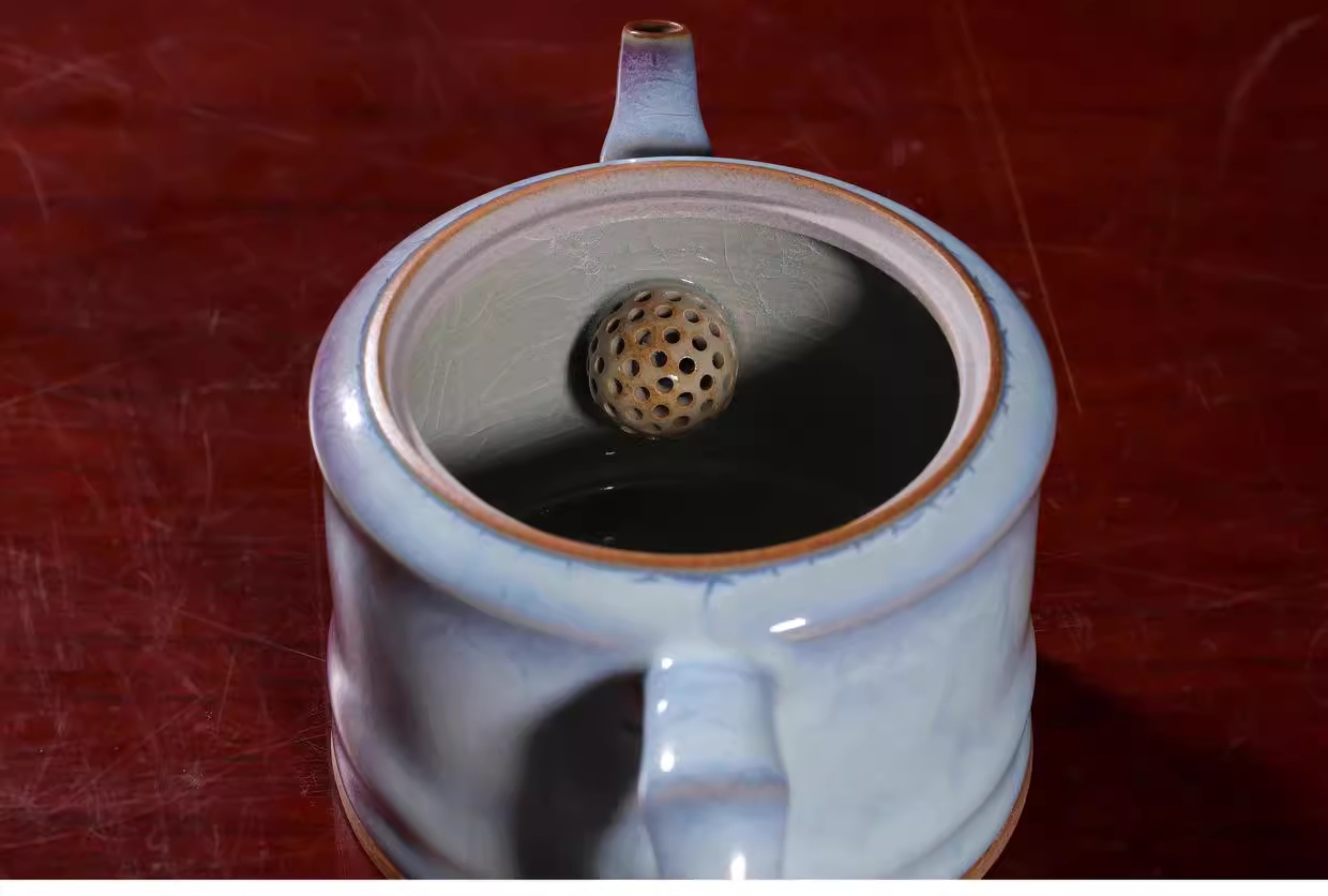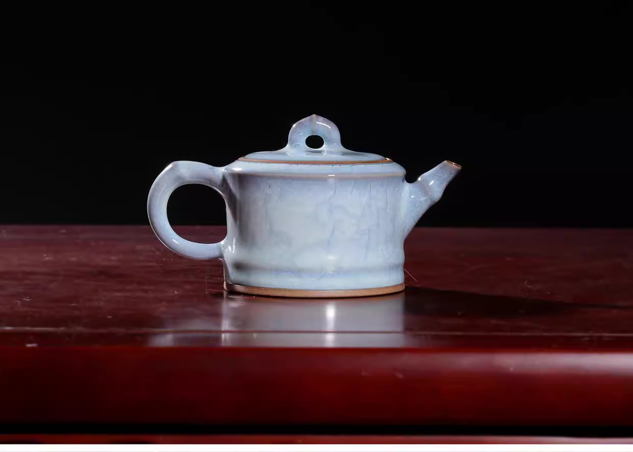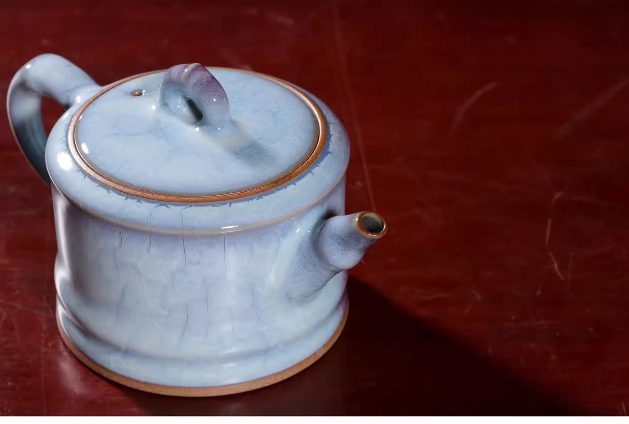 五大名窑之钧窑藏品级钧瓷天青茶壶工艺美术大师作品