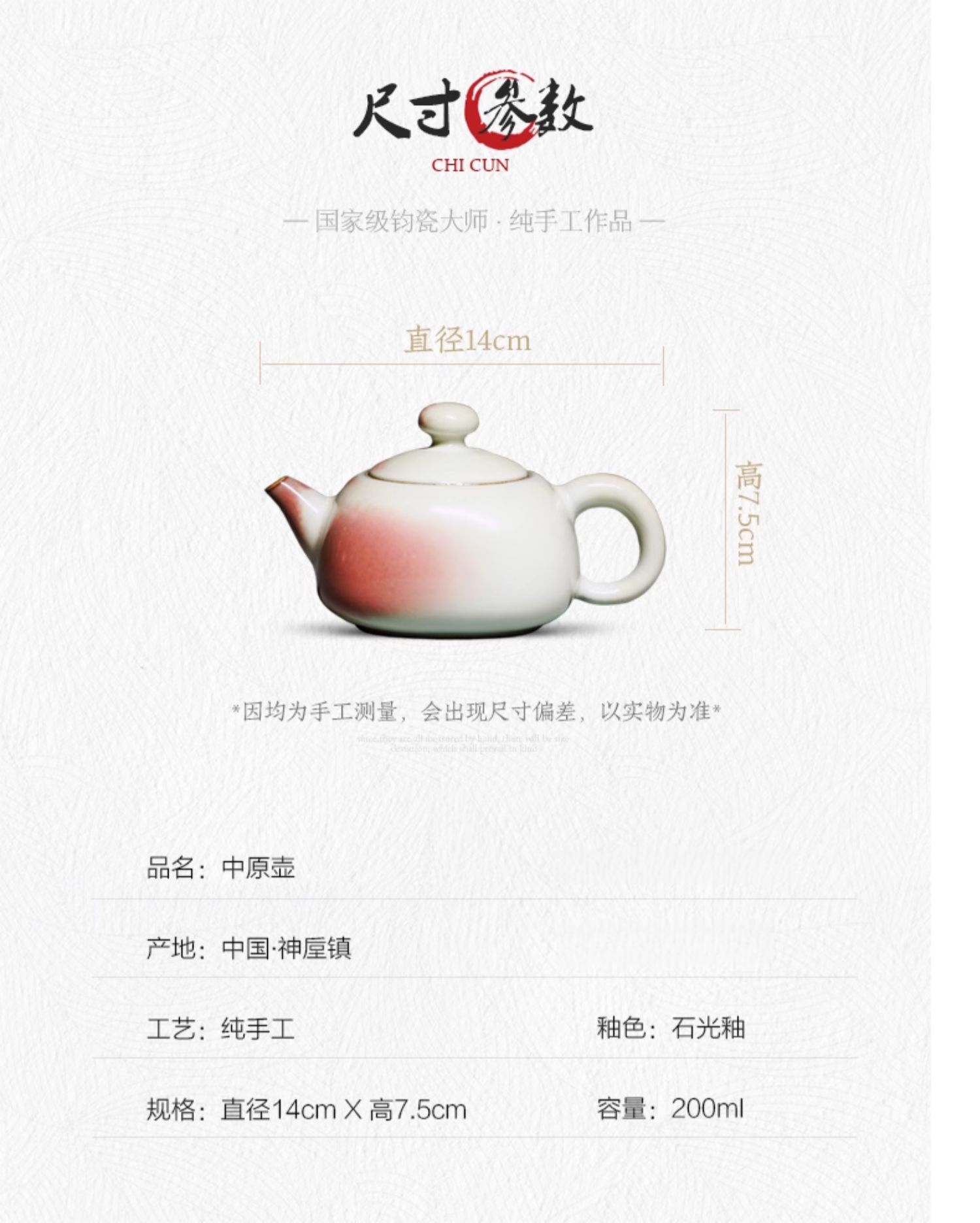 钧瓷茶壶天青釉均泡茶壶功夫茶壶中原壶[石瓢壶]