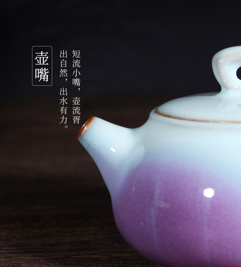 传统手工家用办公室钧窑钧瓷茶具釉窑变色套装僧帽壶