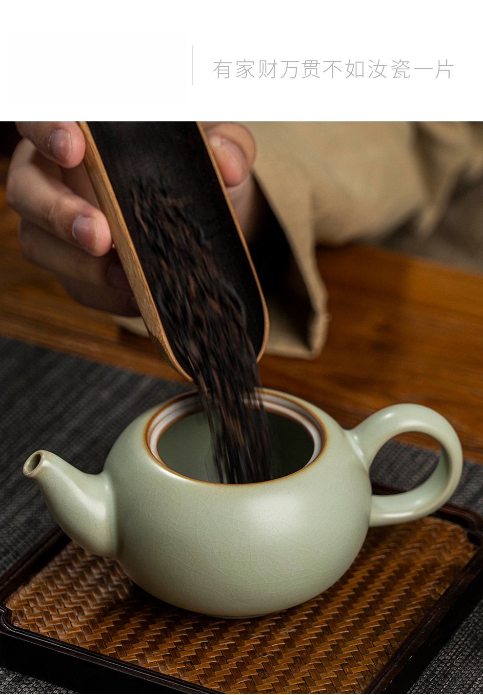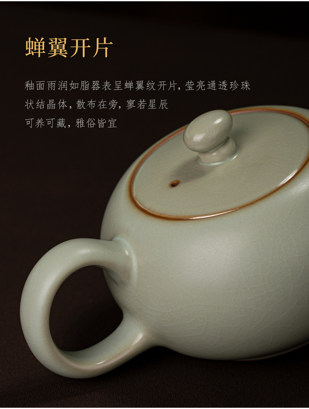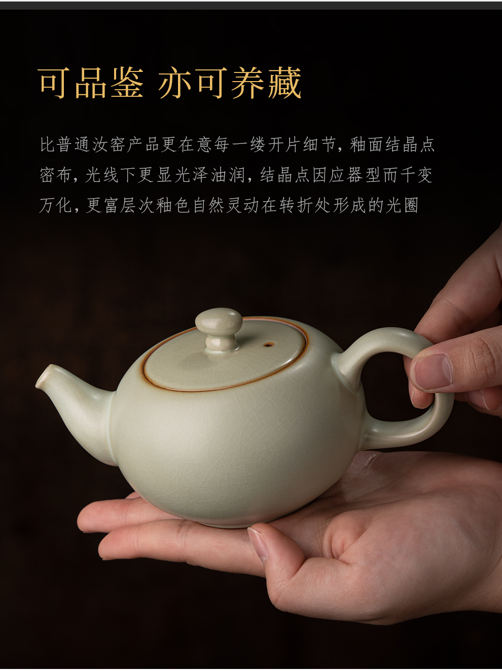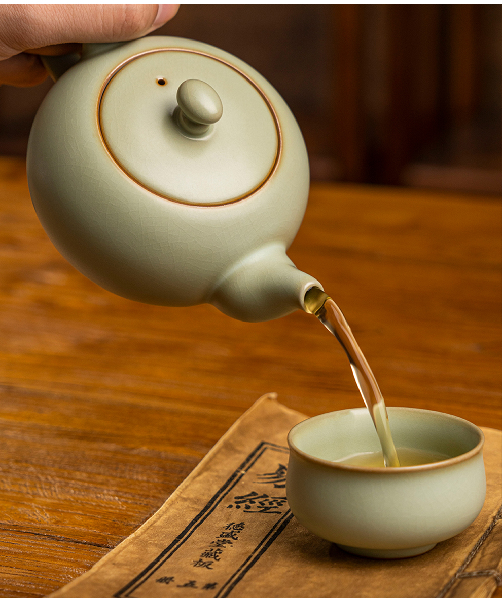 汝窑泡茶壶单壶陶瓷复古手工汝瓷开片茶具单壶可养家用景德镇青瓷